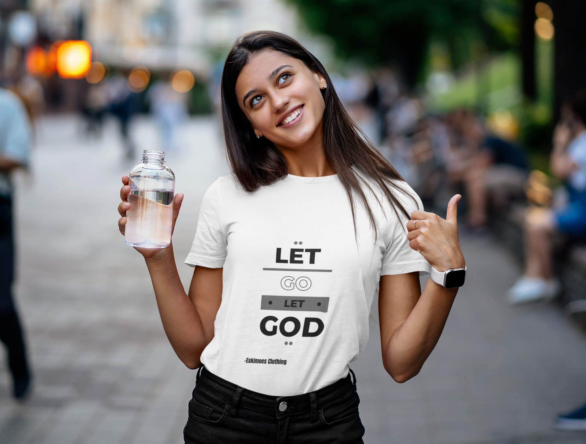 This t-shirt displays “Let Go, Let God” in serene lettering, offering a comforting reminder to trust and release control. Perfect for a peaceful, faith-inspired style.